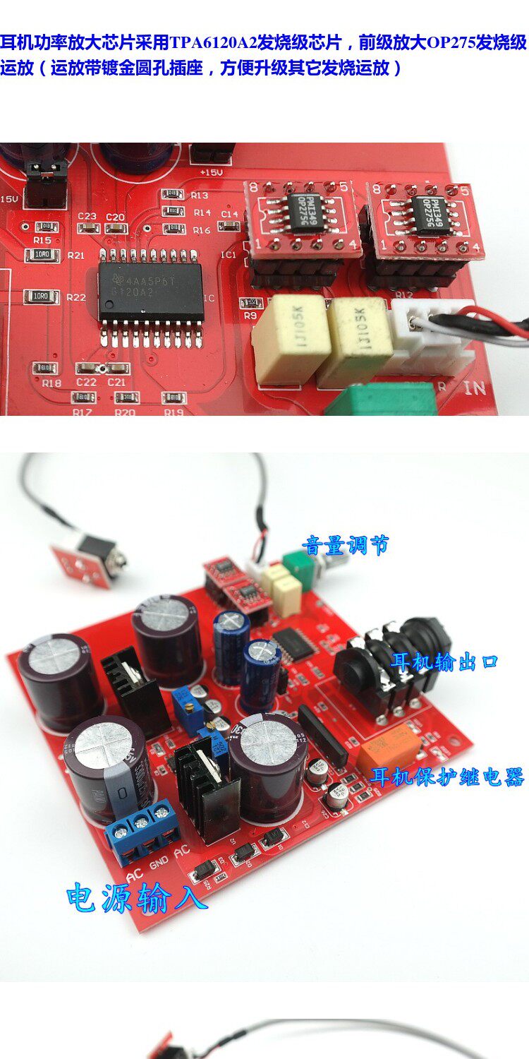 TPA6120A2 Новая плата+OP275 Усилитель гарнитуры передней лихорадки