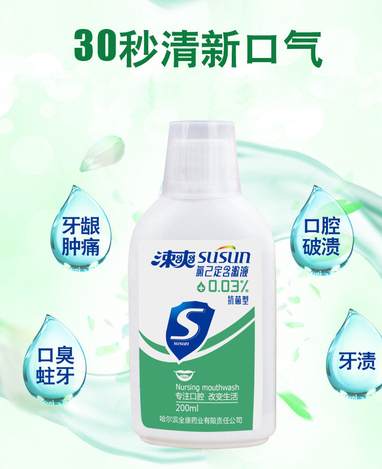 涑爽 Ополаскиватель для рта, оральный свежий дезодорант, 200 мл, 65G, 2 шт