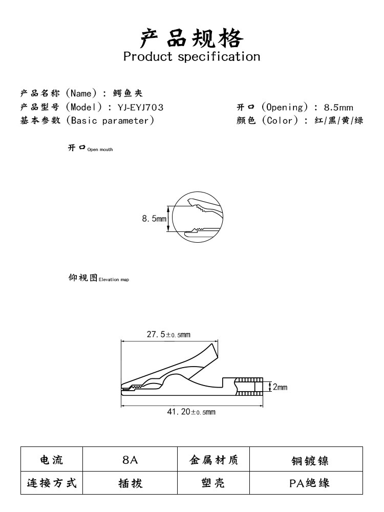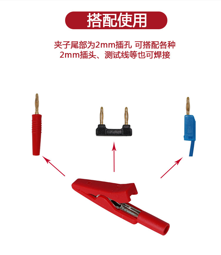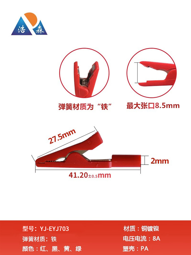 EYJ703 Крокодиловый поперечный тест 2 мм пружинный электрический крокодил толстый крокодил крокодиловый крокодил крокодил -кросс -провод