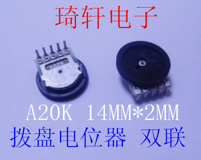 Потенциометр с циферблатом, потенциометр A20K A203, двойной 14MMX2MM