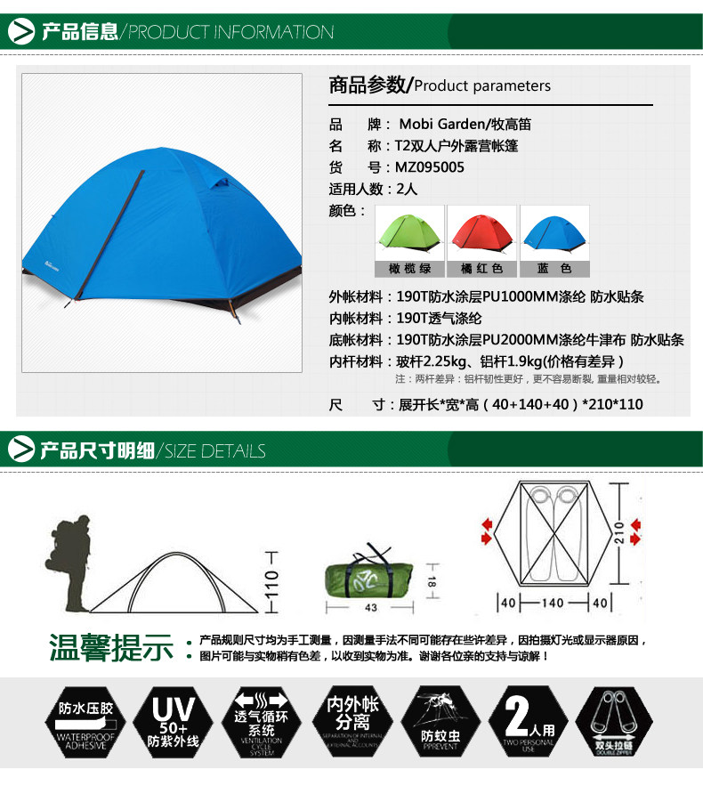 Mu gao di t2 алюминиевая палатка палатка на открытом воздухе двойной слой супер -световой семейный кемпинг Гауди Холодная гора Упрощенная версия