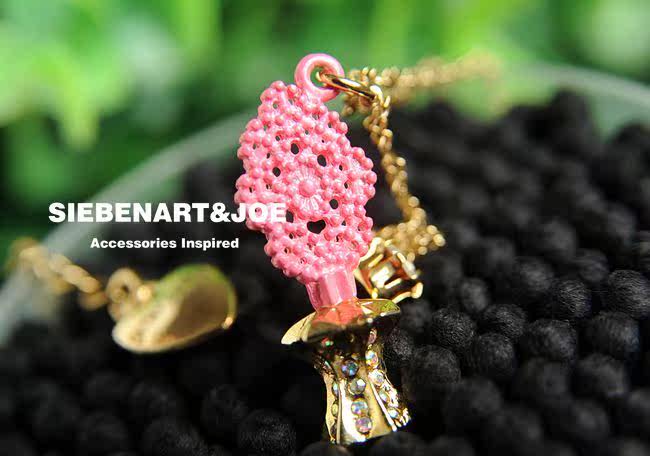 Розовое кружевное ожерелье составляет 40 см+7,0 см длиной, а подвеска составляет около 2,9 см*1,1 см.