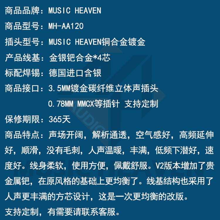 Music Heaven AA120 Gold, Silver, Palladium Malloy Sudan P Khan 4.4 Сбалансированные наушники сбалансированной