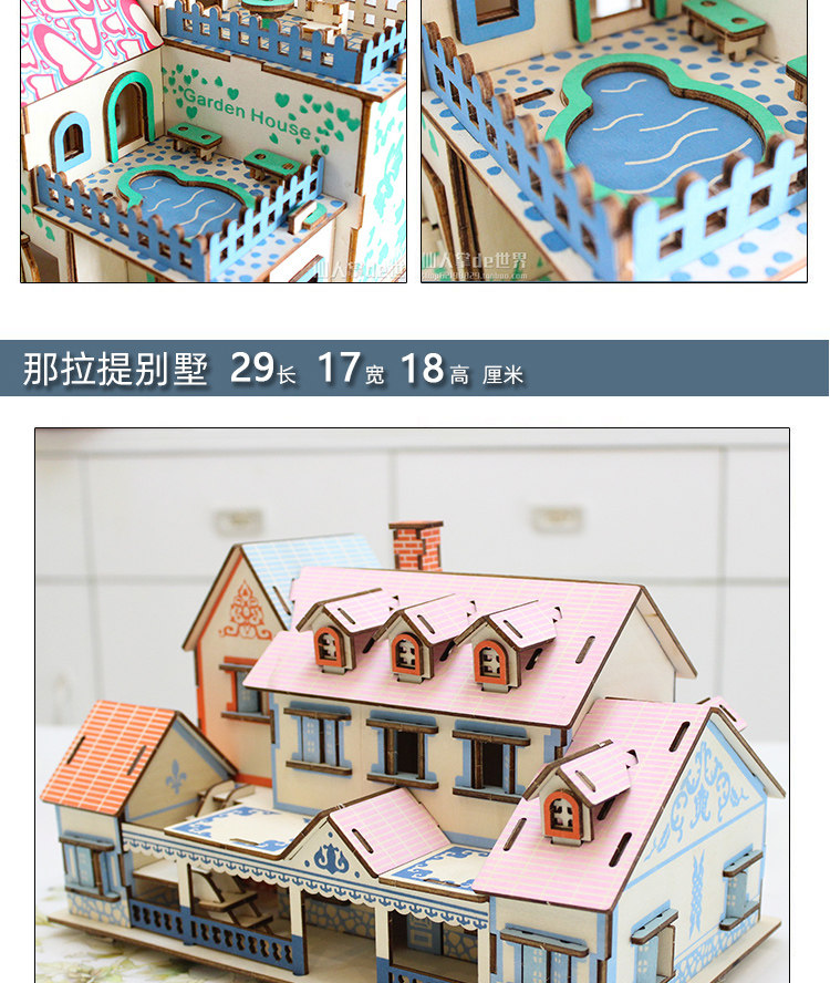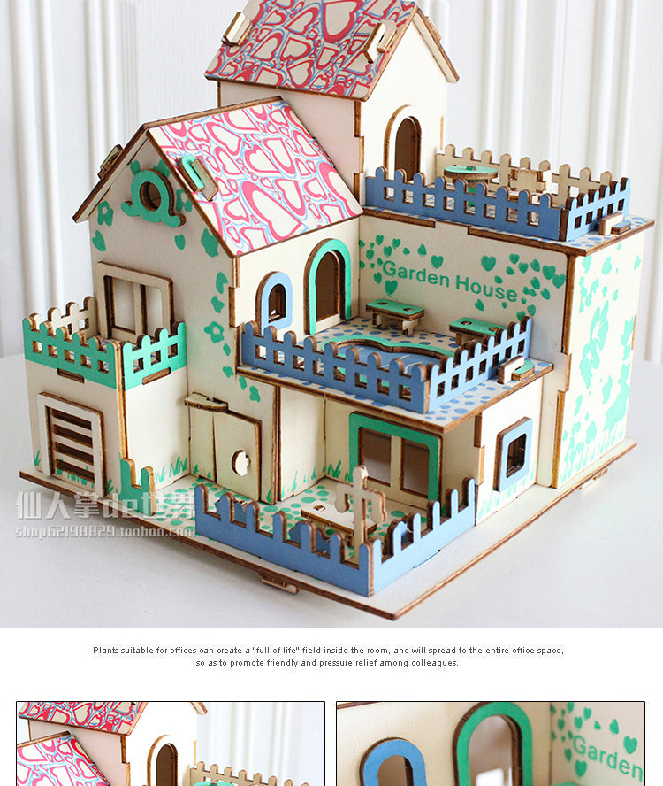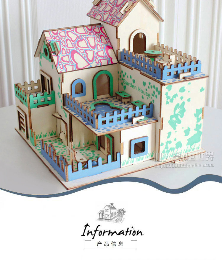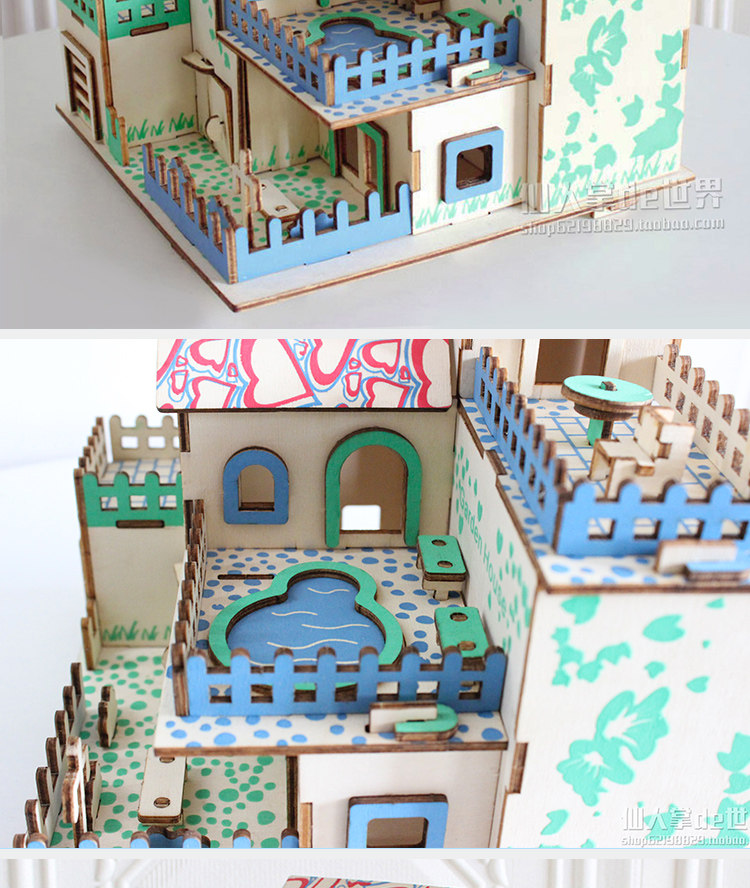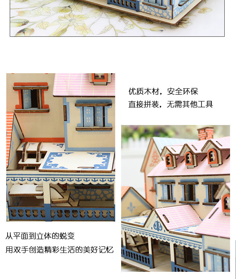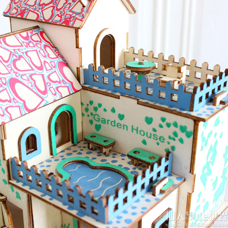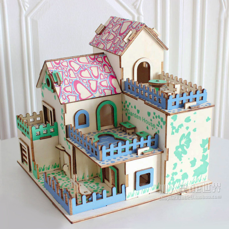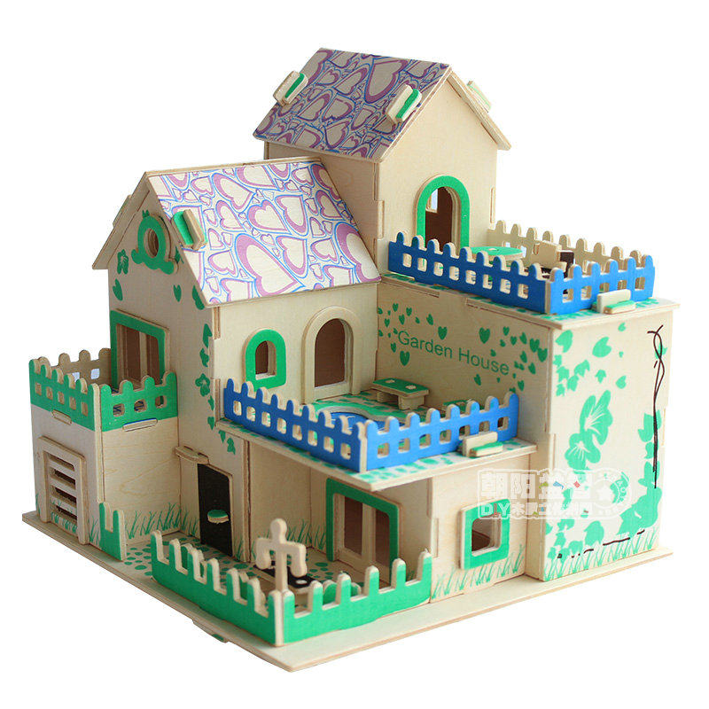 Головоломка, домик, деревянный трехмерный конструктор для мальчиков и девочек, вилла, фигурка, игрушка, DIY, в 3d формате