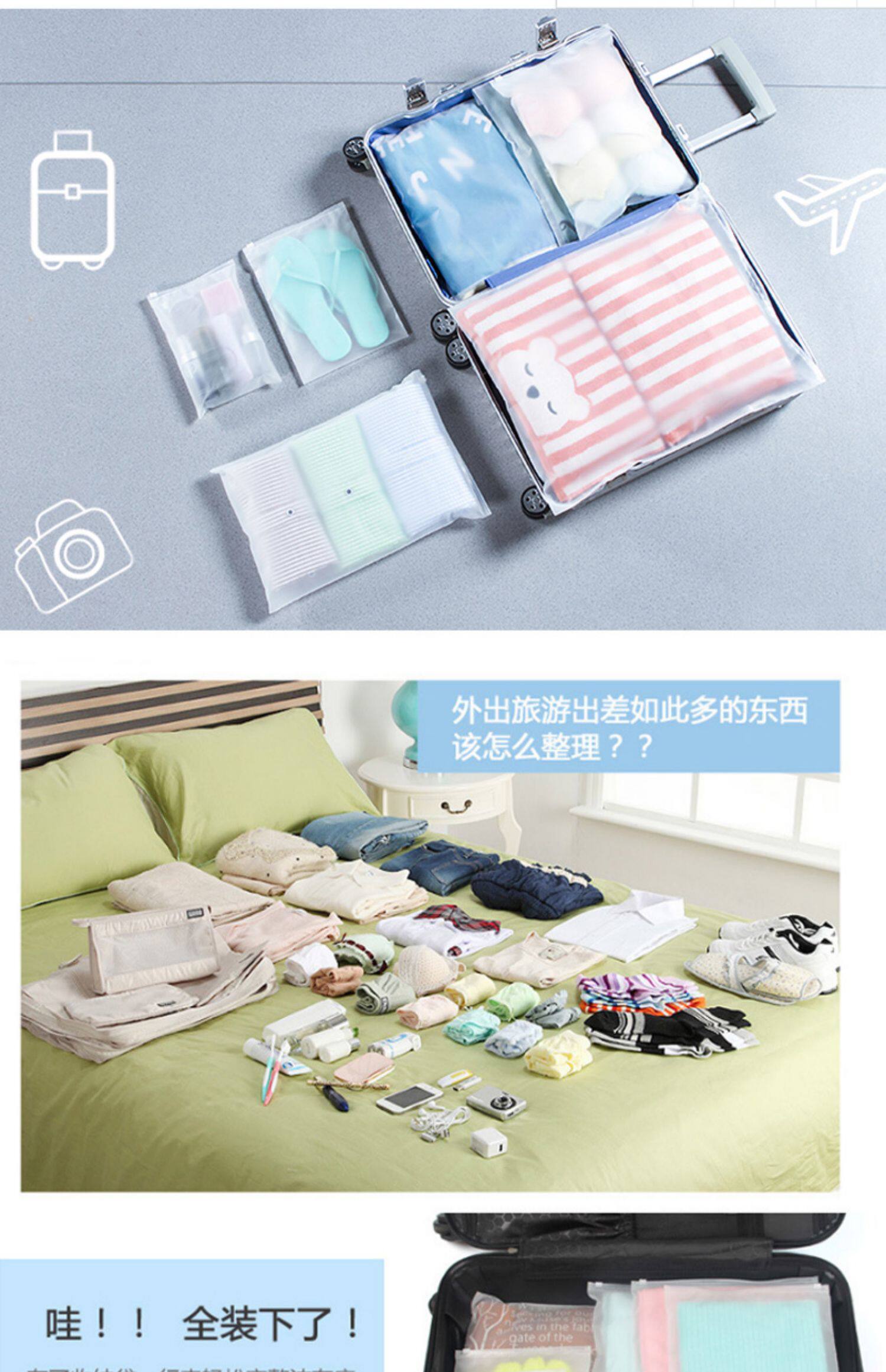 Сумка для хранения для путешествий, пакет, герметичный мешок с молнией, багажная система хранения, 5 шт