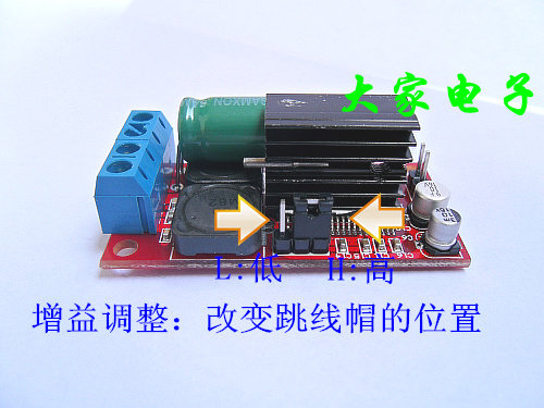Он использует конструкцию схемы BTL, оснащен перемычкой регулировки усиления и имеет сверхмалый размер.
