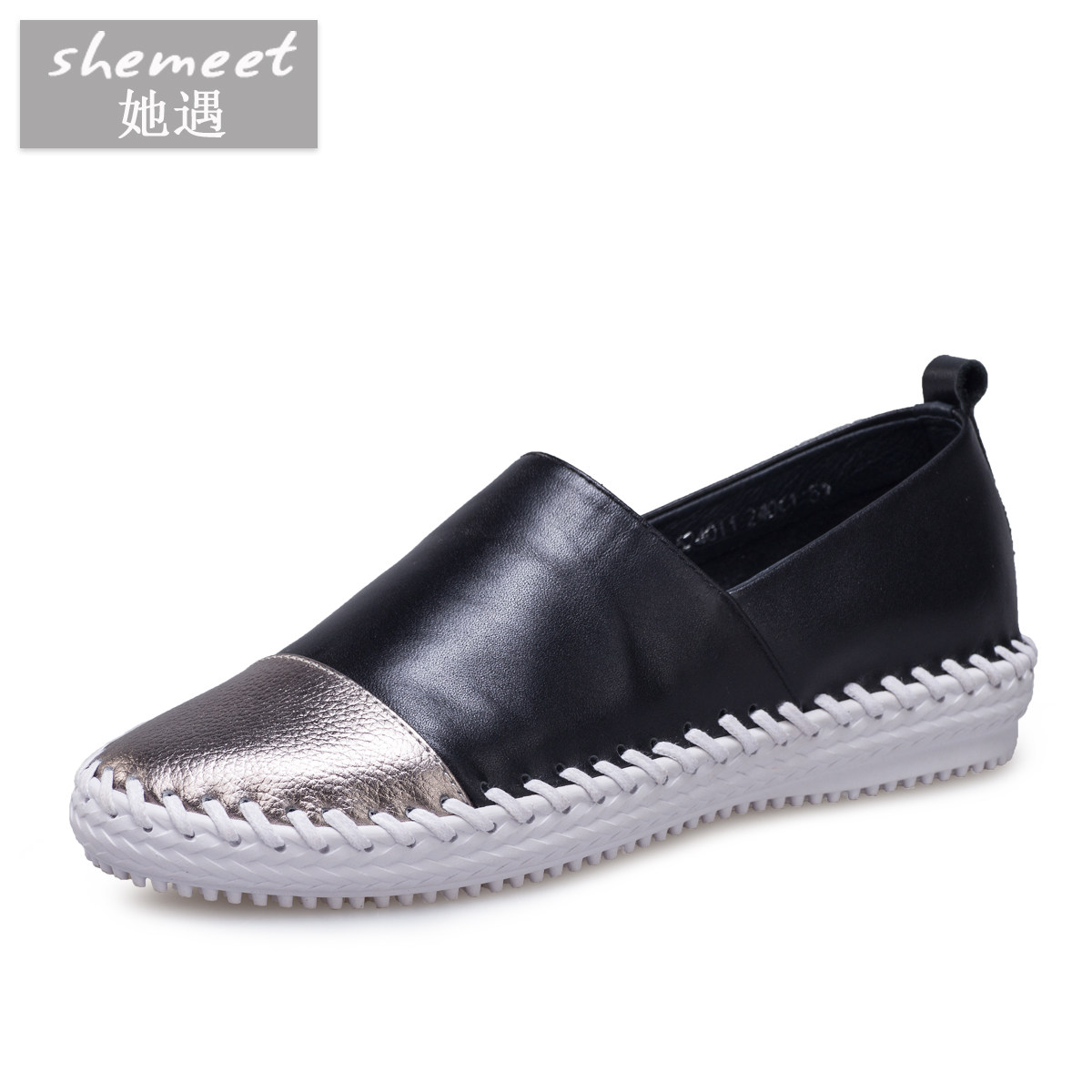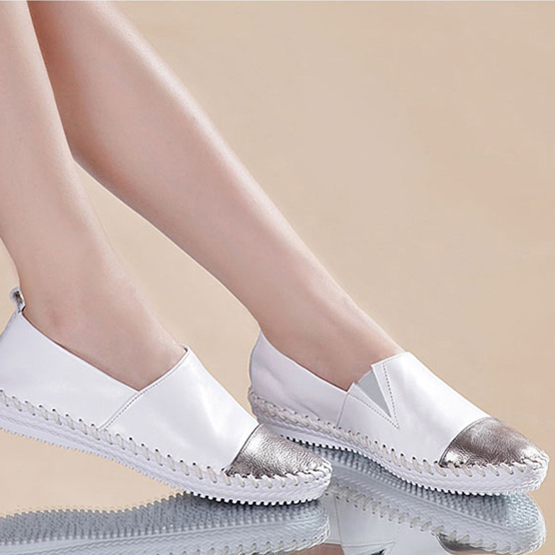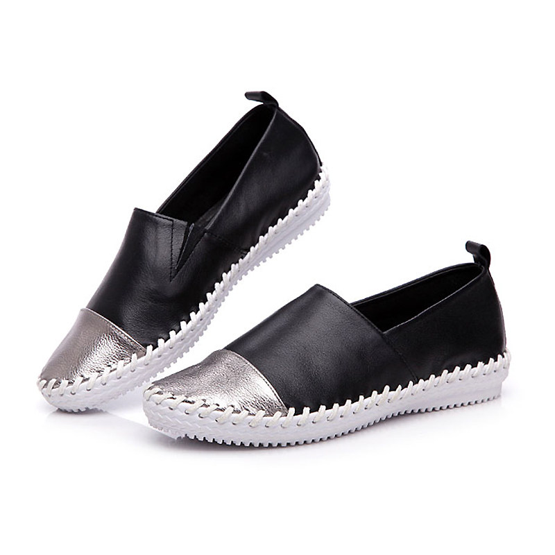 She Met 2014, летние новые стильные туфли на плоской подошве из натуральной кожи, женские повседневные туфли на плоской подошве, туфли с низким берцем и глубоким вырезом на резинке