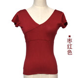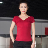 Летняя спортивная одежда, хлопковая футболка, короткий рукав, облегающий крой, V-образный вырез
