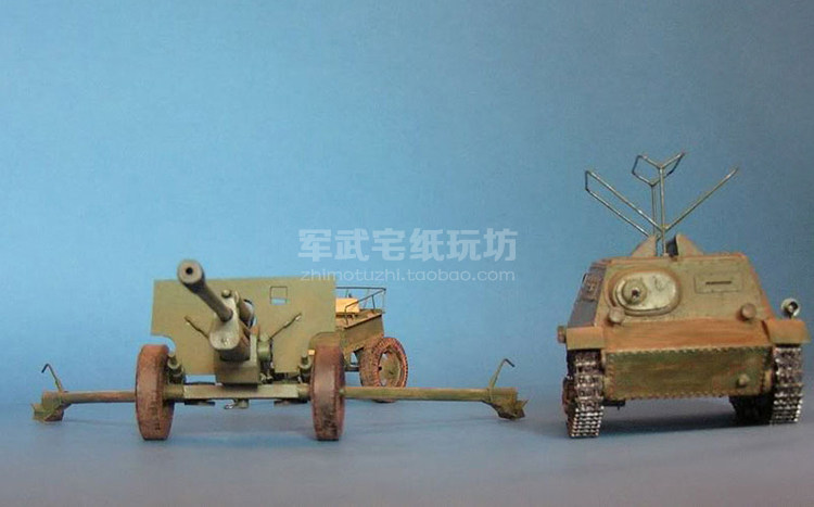 Советский T-20 бронированная тяга Traction Traction+ZIS-3 Cannon Paper Model 1:25 Тропительная артиллерийская модель