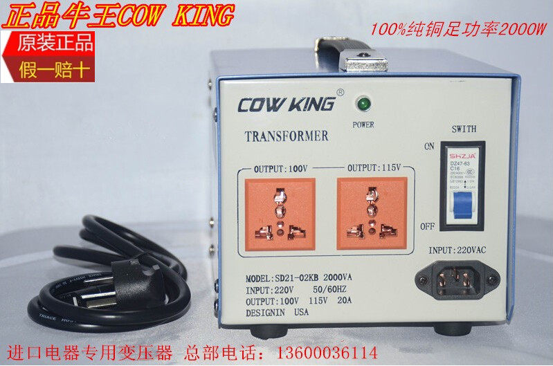 Подлинная "Niu Wang" Коровясь король100%чистая медная мощность 220-100 В 115 В 2000 Вт трансформатор