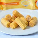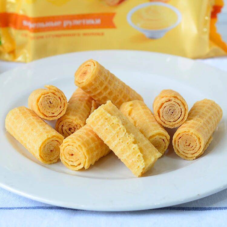 Российские покупки печенья десерт хрустящие яичные рулетики, жареные яичные булочки, молоко сгущенное молоко хрустящее печенье закуски