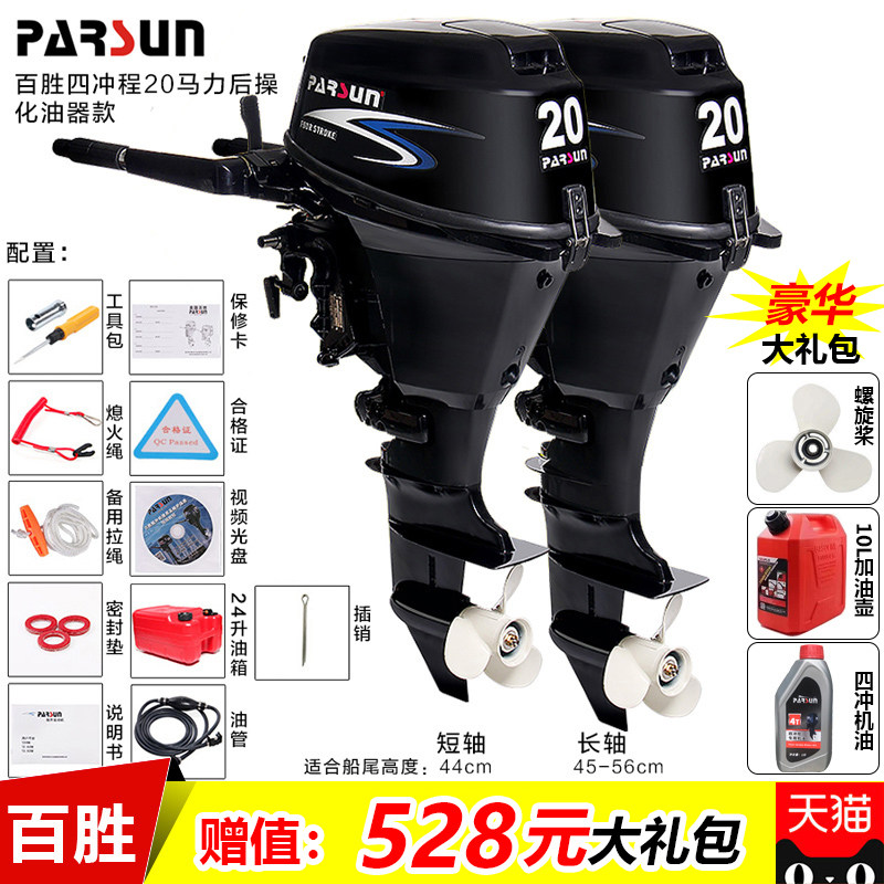 - Четырехтактный двигатель мощностью 20 л.с. (короткий вал с задним приводом)