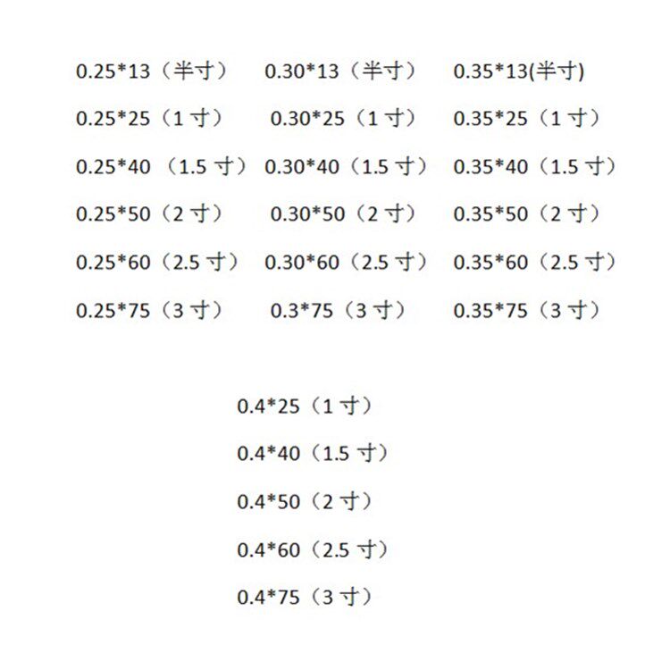 0,25x40 мм на полтора дюймаОбычно используется новичками(Посвященный похудениюПолем