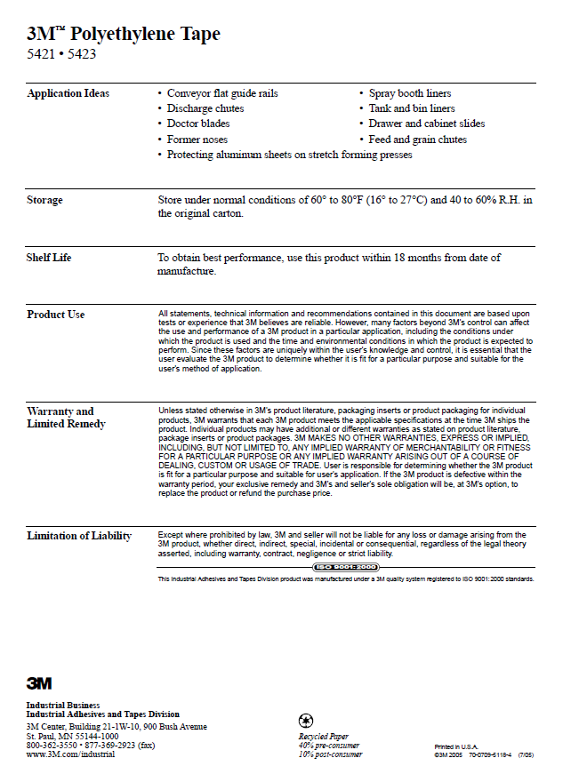 3M 5421 Ультра -высокий молекулярный полиэтилен износ -устойчивый