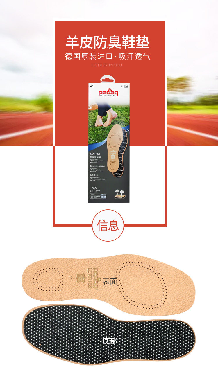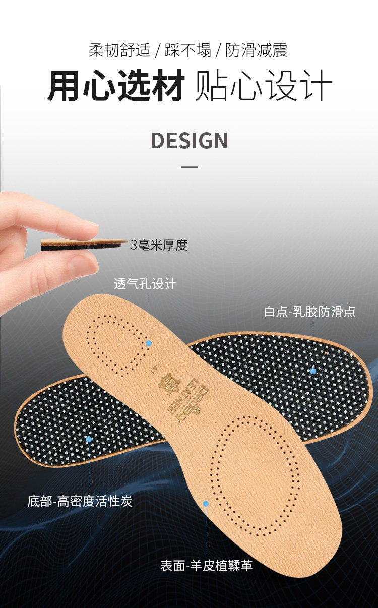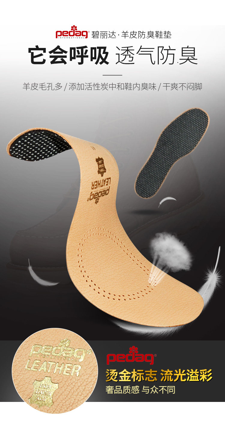 Импортные амортизирующие антибактериальные дышащие стельки, Германия, из натуральной кожи, впитывают пот и запах