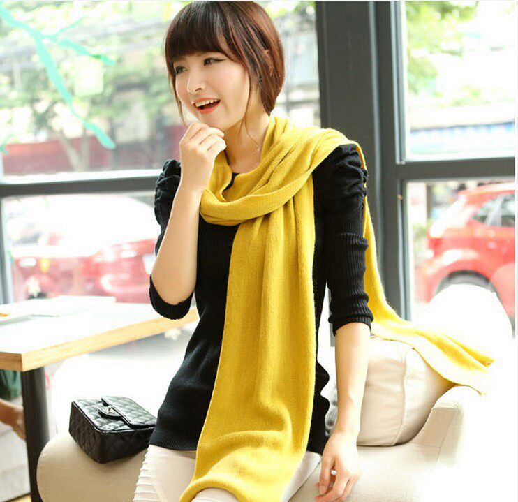 Зимний теплый твердый цвет длинный шарф
