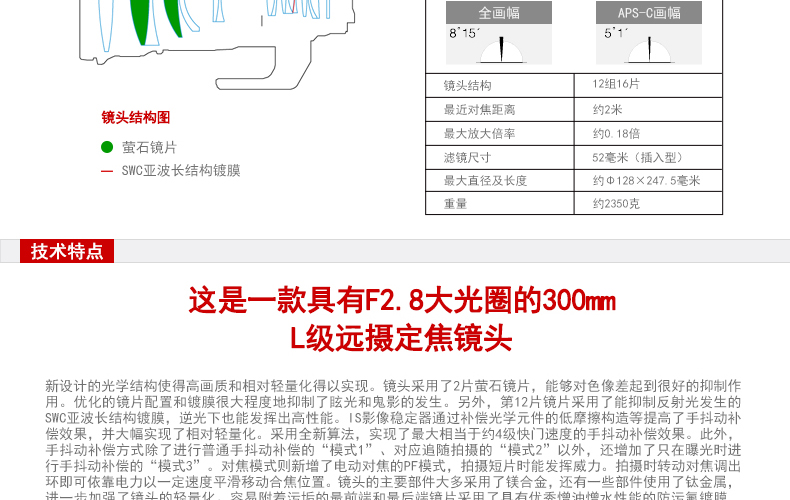 [Флагманский магазин] Canon/Canon EF 300 мм f/2.8L IS USM FOCUS FOCUS SLR