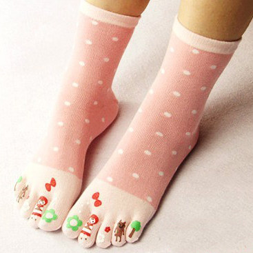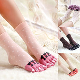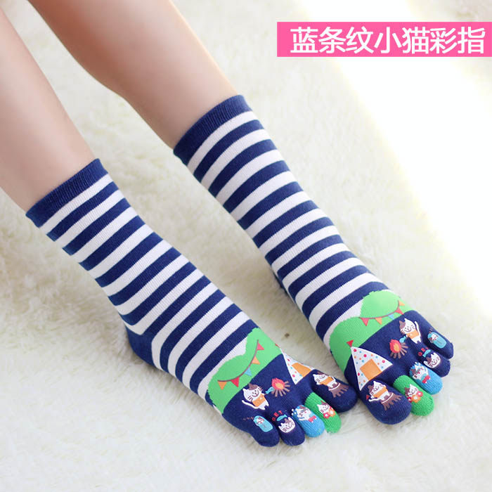 Милые хлопковые носки для пальцев на ноге, средней длины, высокая талия, впитывают пот и запах