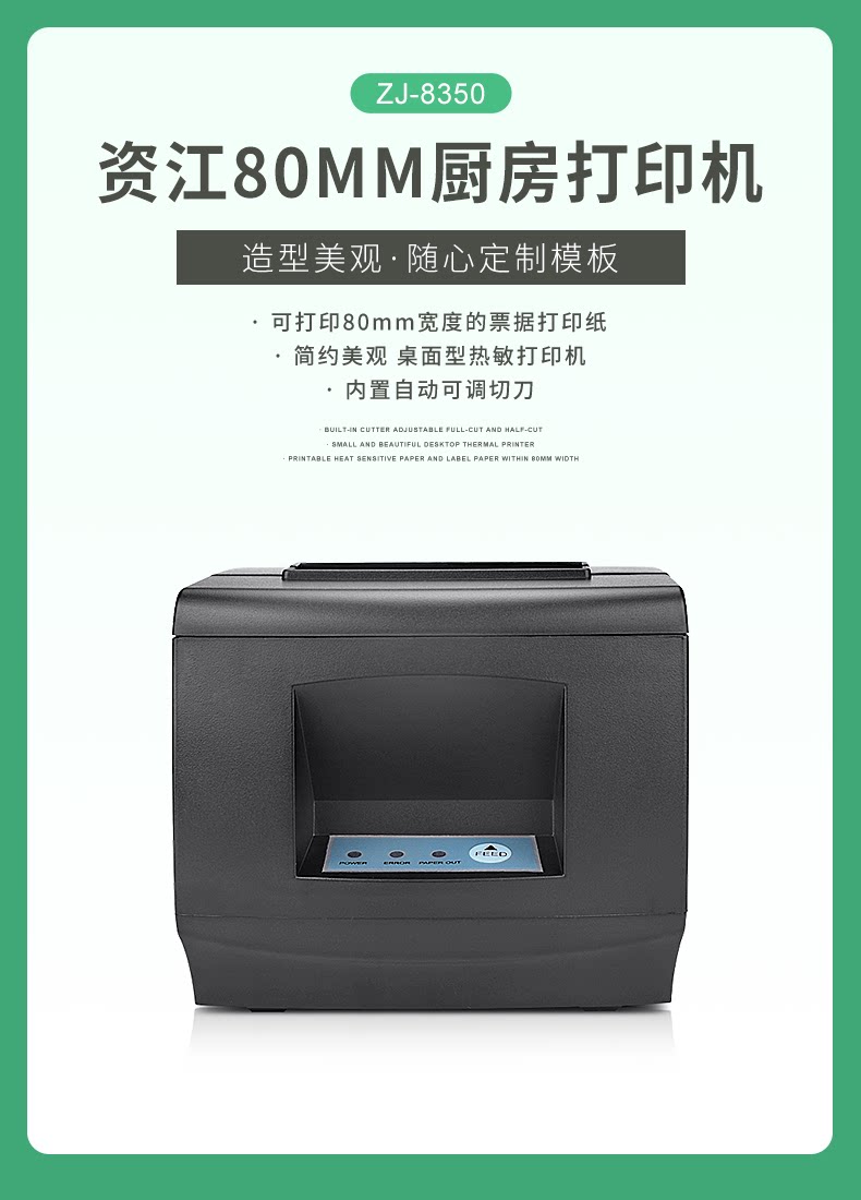 Zijiang ZJ-8350 Термиста-чувствительный принтер задний кухонный принтер USB Bluetooth Serial Port Wi-Fi Автоматический нож беспроводной маленький тиревый принтер 80 мм сетка на вынос одного принтера.