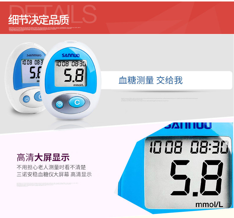 - Метр глюкозы в крови+150*(тестовая полоса+игла для сбора крови+хлопковые ломтики)