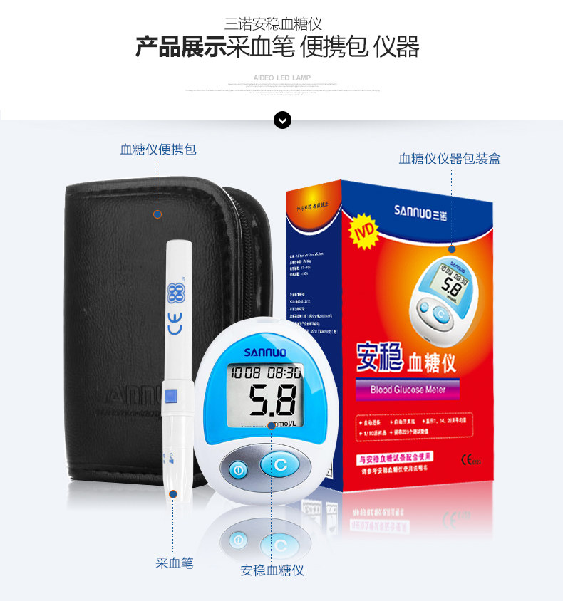 - Метр глюкозы в крови+300*(тестовая полоса+игла для сбора крови+хлопковые ломтики)