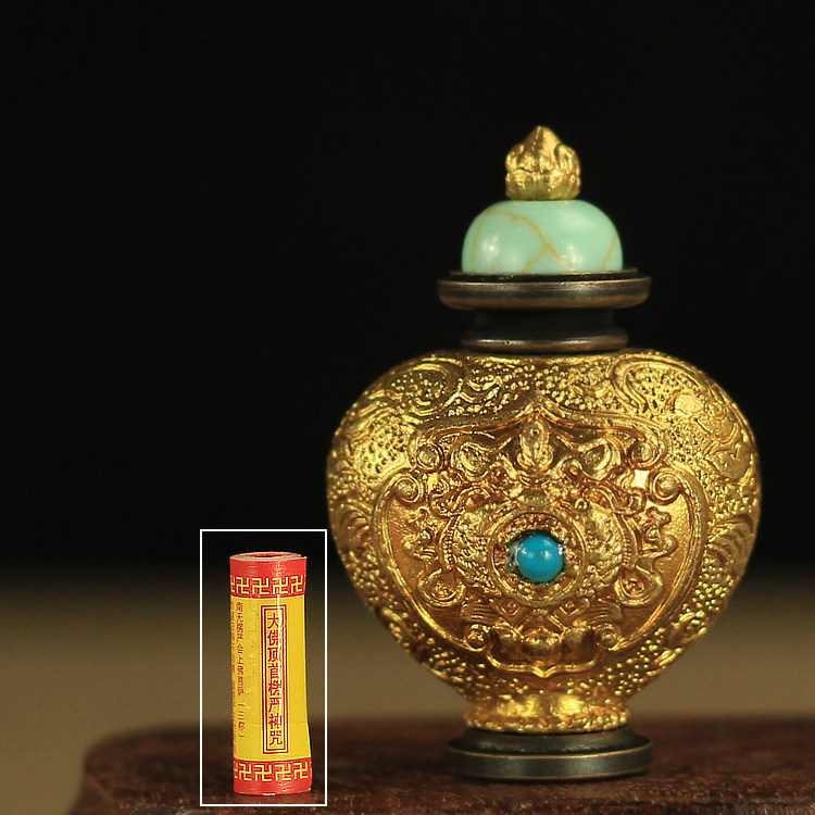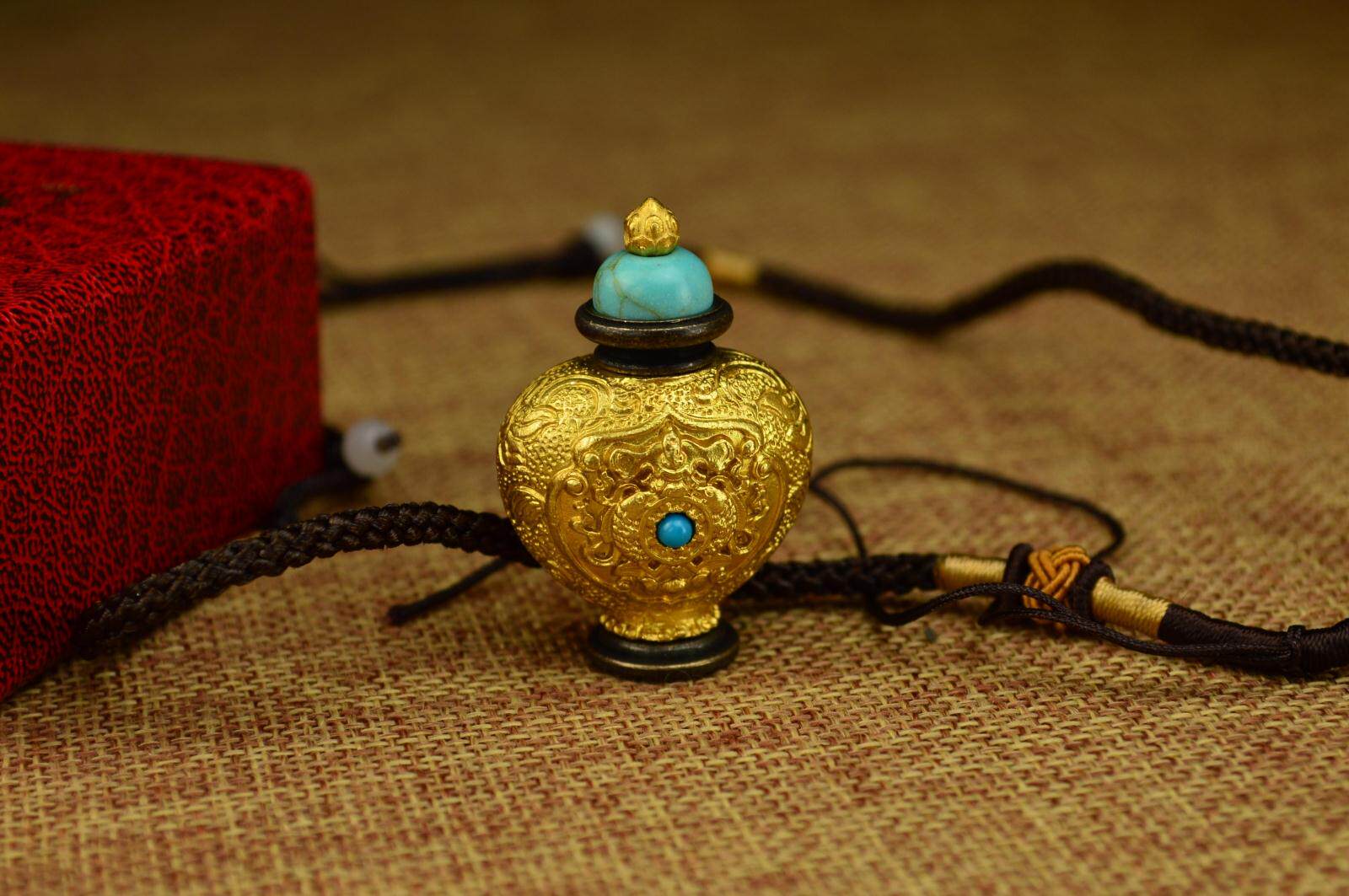 Тибетские продукты, изысканные сокровищнические бутылки, подвеска для коробки Гаву, чистая медь, мантра Шурангама, таблетки нектара, писания и реликвии