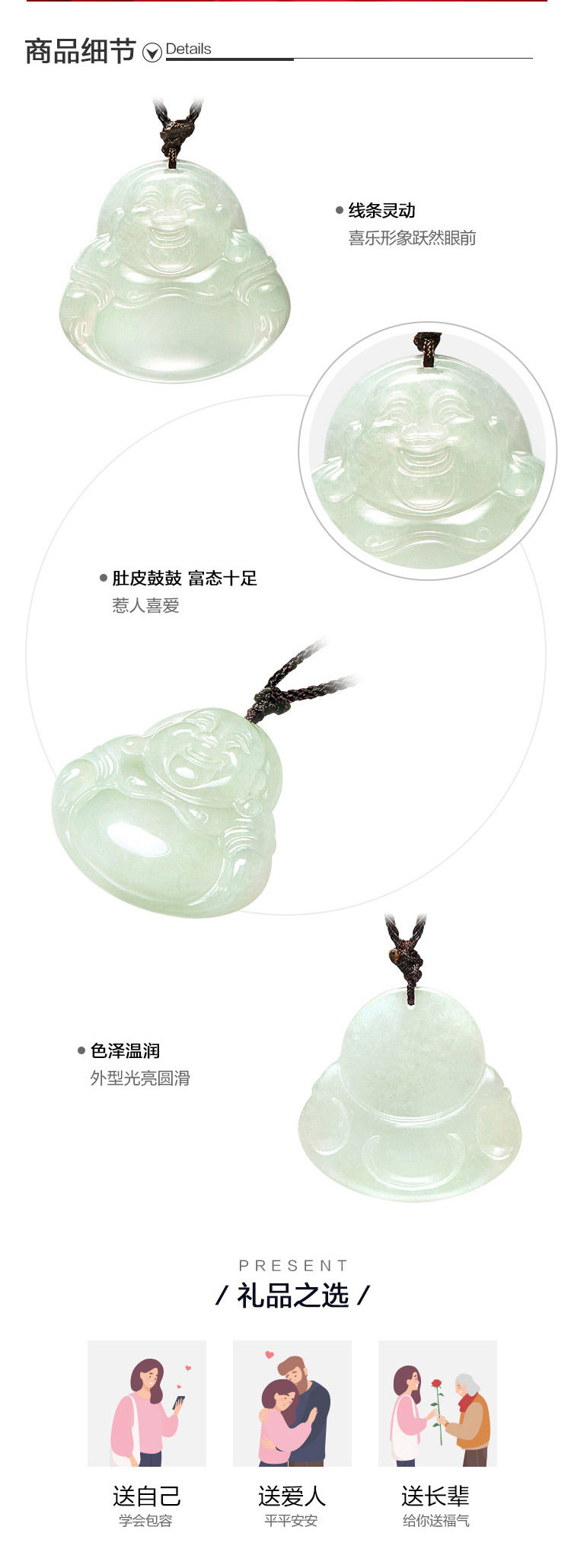 周大福 Мейтрейя Будда Фуксиан Пинг А. Будда Джейд Джейд нефритовое колье ожерель