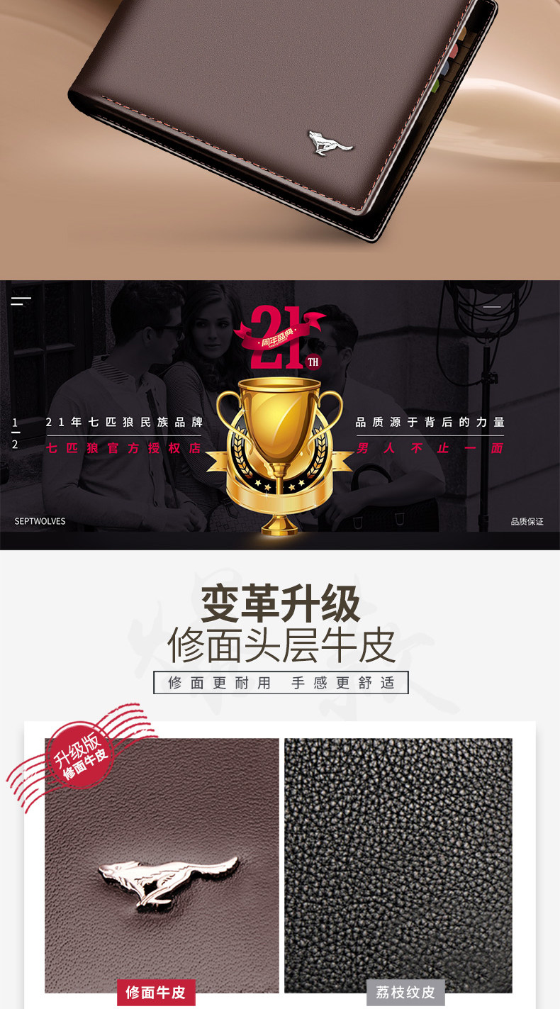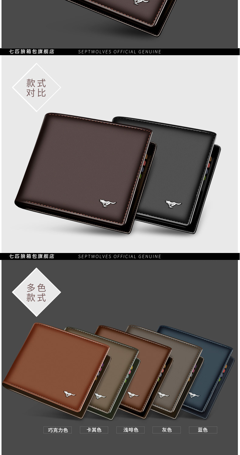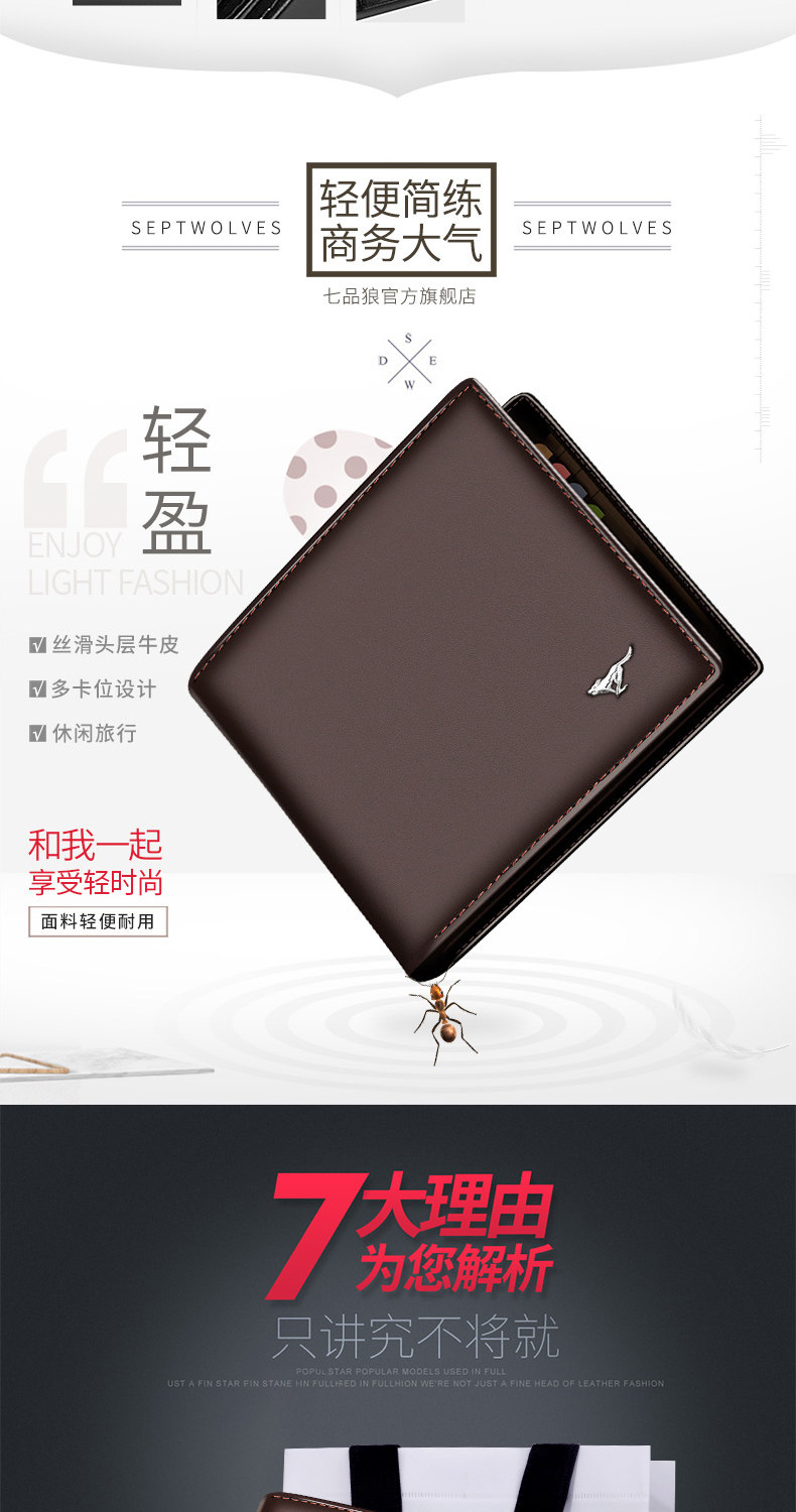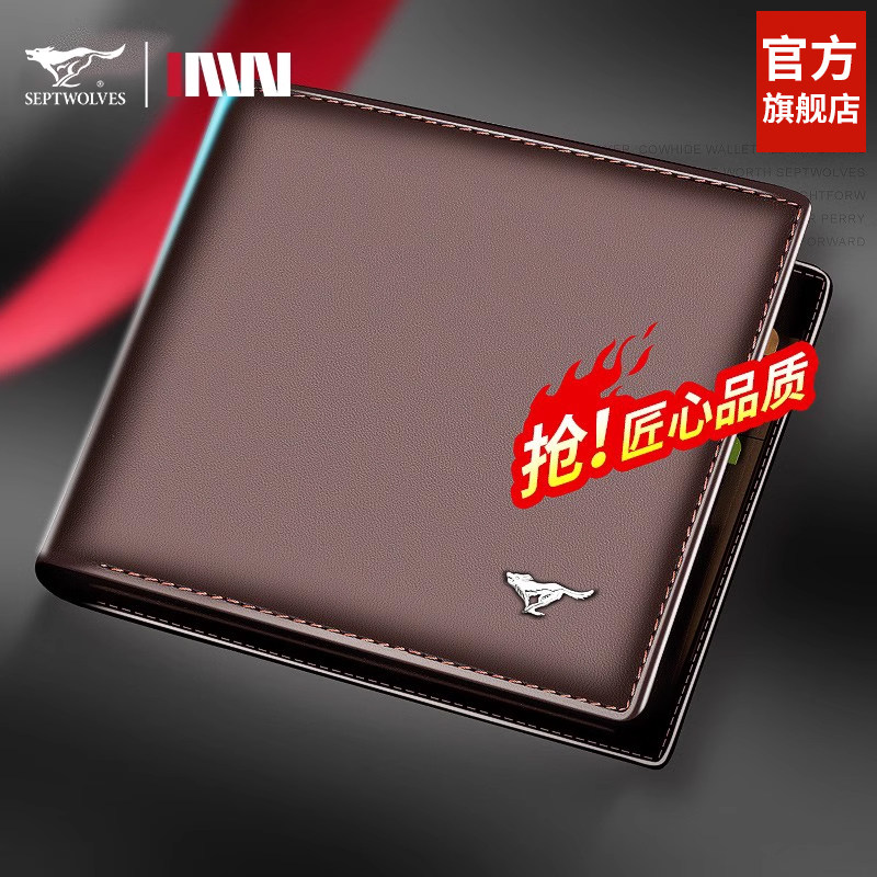 Septwolves, мужской короткий бумажник, кожаный кошелек на день Святого Валентина, из натуральной кожи, воловья кожа, подарок на день рождения