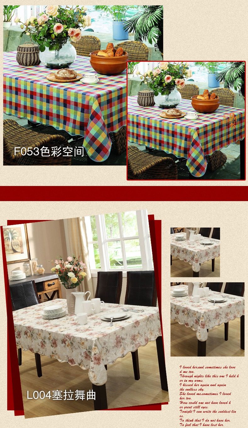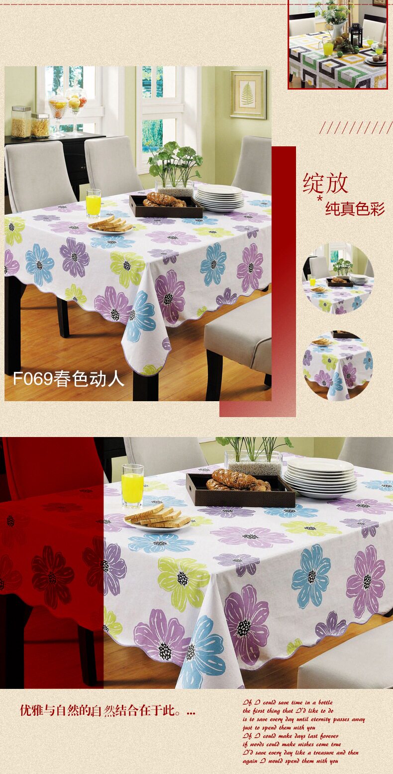 1. Этот тип скатертью является ПВХ, с бархатом внизу, главным образом потому, что он водонепроницаемый, масло, нагрев, нагрев и чистку.