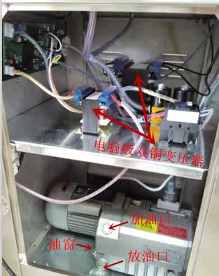 2. Проверьте уровень масла вакуумного насоса, откройте боковую пластину из нержавеющей стали, чтобы наблюдать за прозрачным полуферическим стеклянным шариком (посмотрите на масляное зеркало/масляное окно) на боковой стороне вакуумного насоса. Используйте специальное масло для вакуумного насоса 100#. Уровень масла достигает 2/3 сферического стекла. Пожалуйста, не будьте ниже 1/2 или выше 3/4 и не заполняйте его сразу. Вакуумное масло следует заменять часто.(Если у вас есть какие -либо вопросы, пожалуйста, проконсультируйтесь с обслуживанием клиентов в Интернете)