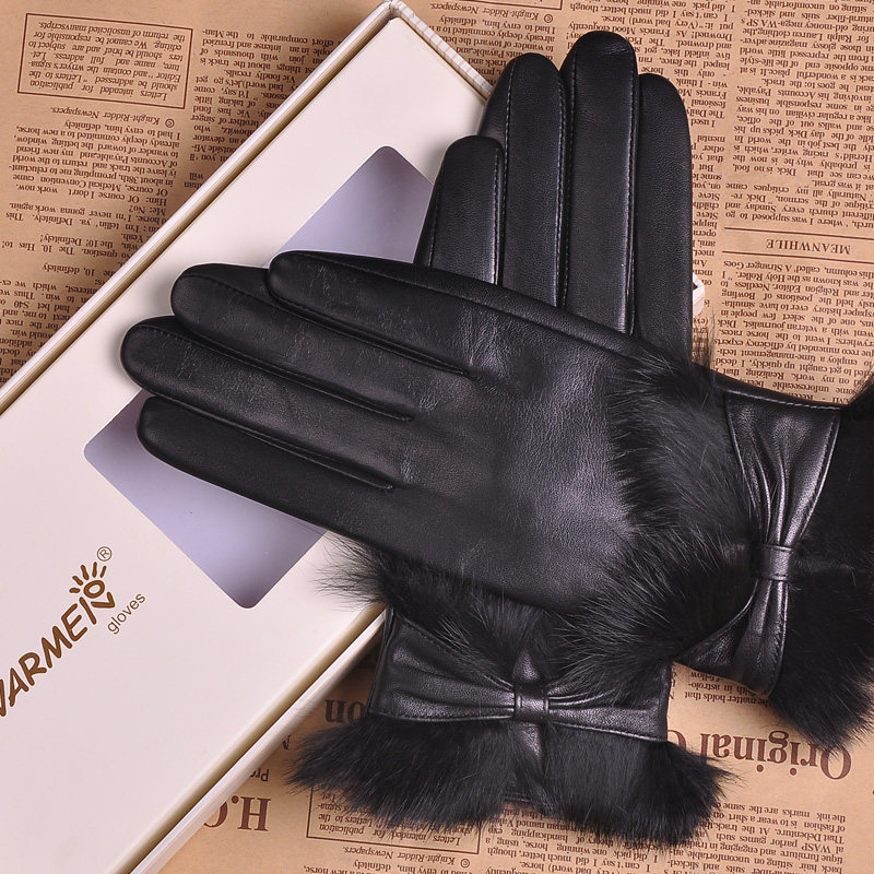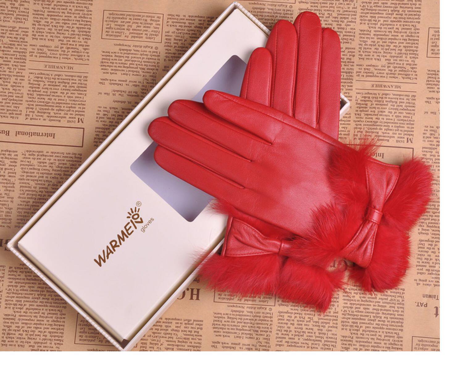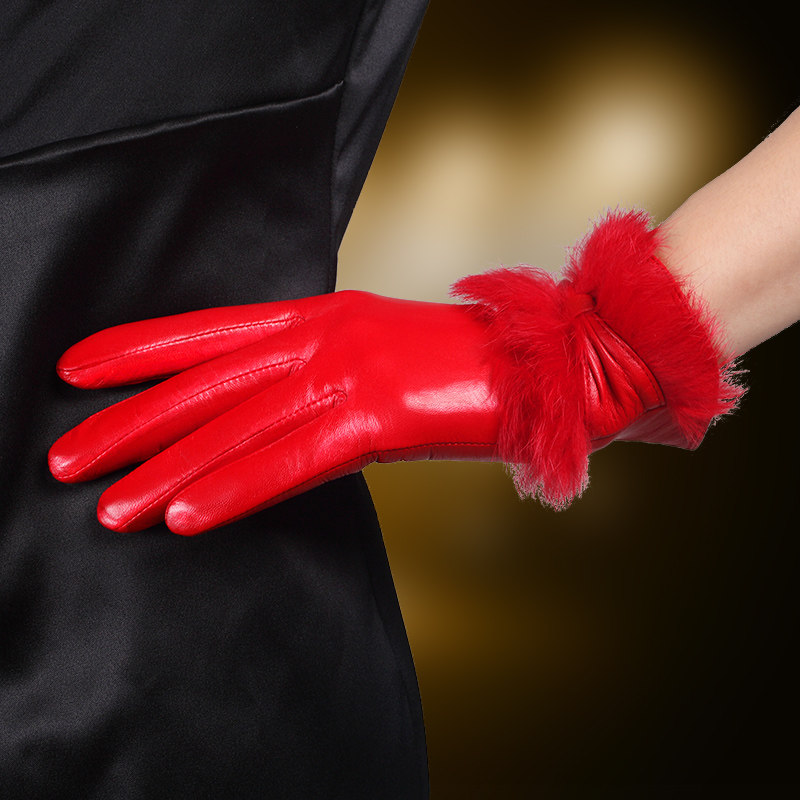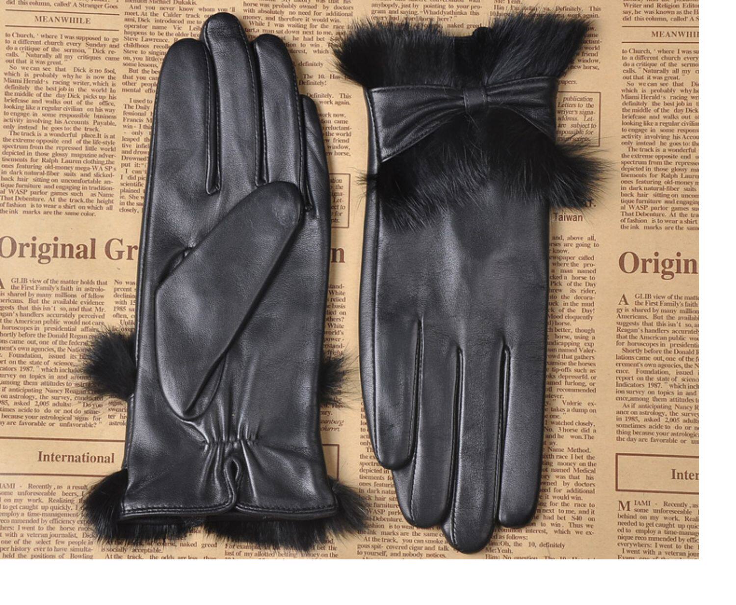 Перчатки, удерживающий тепло шелковистый модный комплект, из натуральной кожи, L149