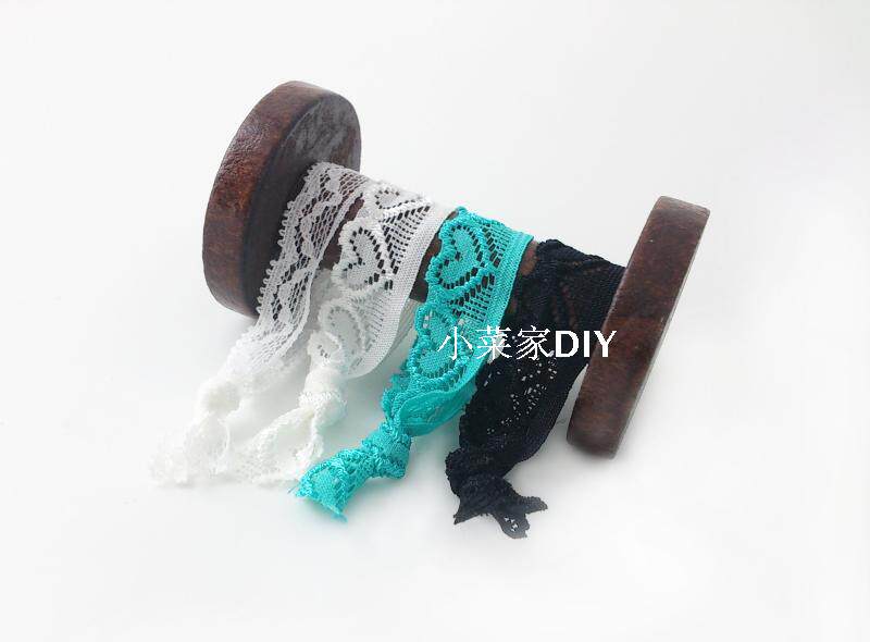 [说明:带点弹性蕾丝花边,多色可选,要其它颜色可以咨询老板,此款花边质量不错,可以随意DIY,你可以做打结发圈发绳发饰,也可以做内衣袖口装饰等等,用途非常广。。。。。。]