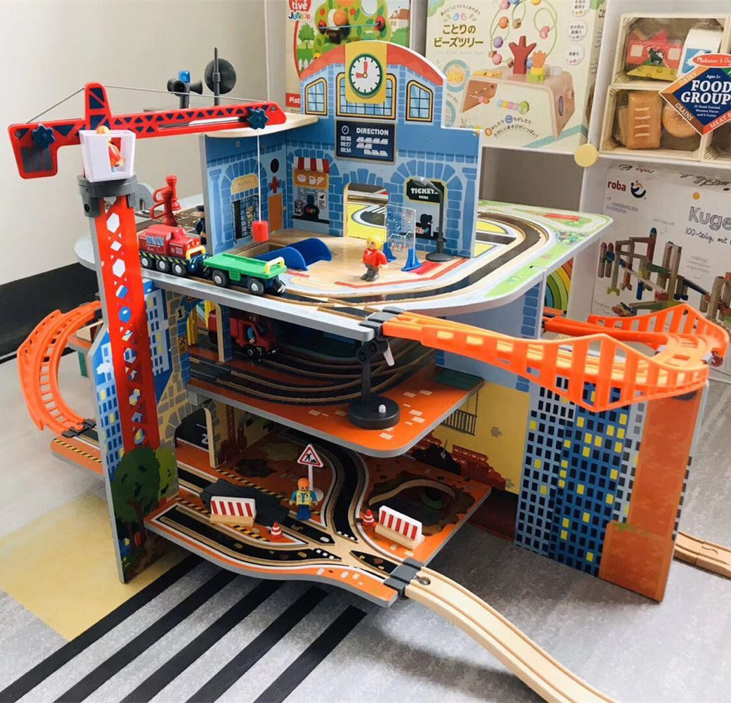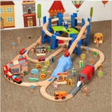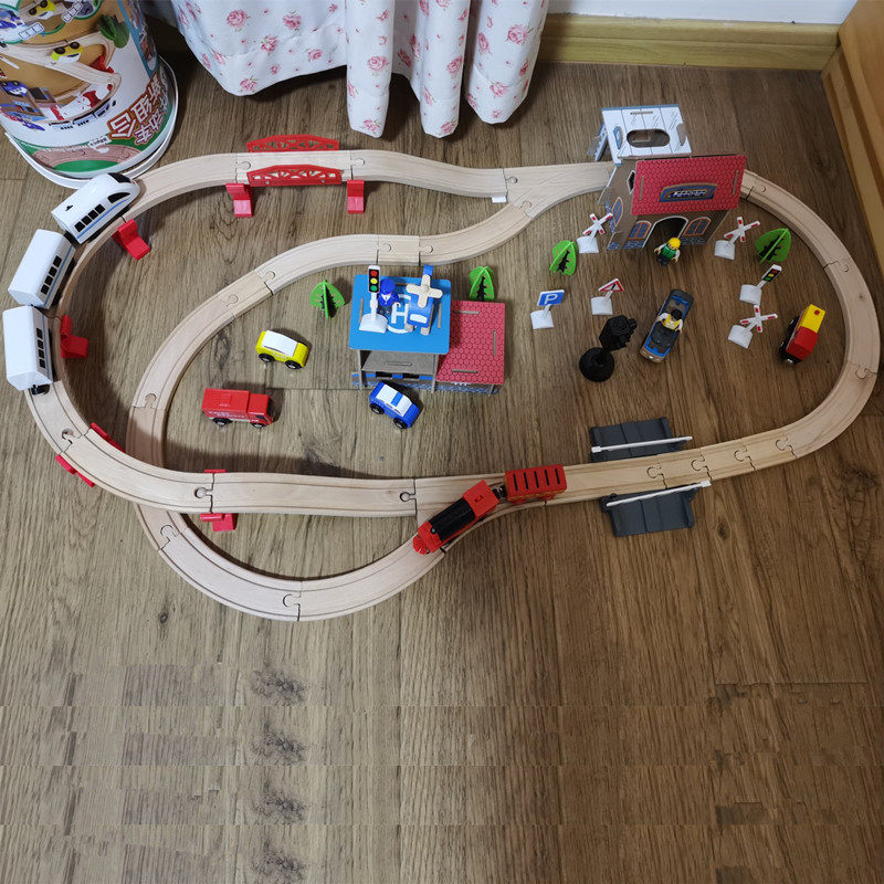 Деревянный детский поезд, комплект для мальчиков, конструктор, детская игрушечная машина с рельсами, 1-3-6 лет