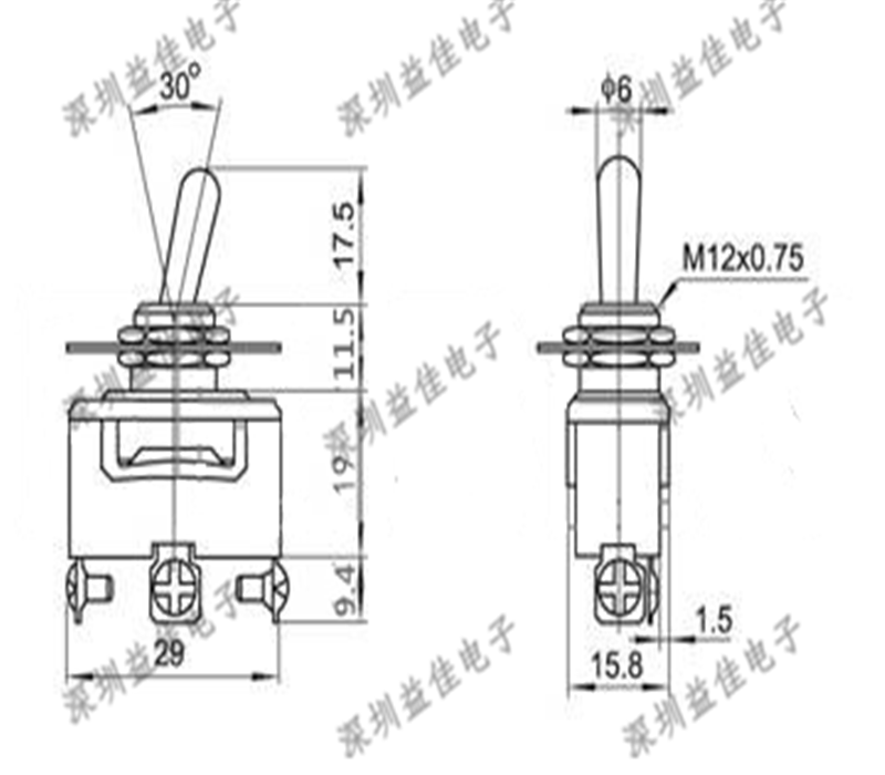 Переключатель кнопки Zengtai E-TEN1121 встряхивает головку рычага рокера, чтобы мобилизовать переключатель 3 штифта и 2 пор шестерни 12 мм