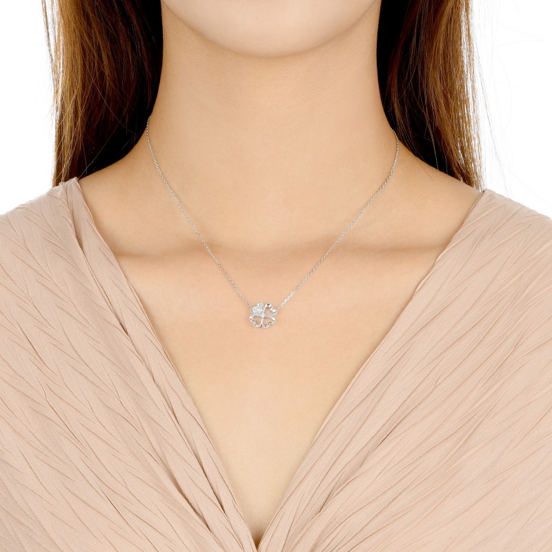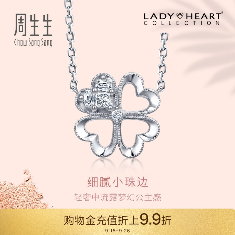 周生生 18 тыс. Золото белое золото ювелирные изделия Леди Сердце Алмазное колье 86085N