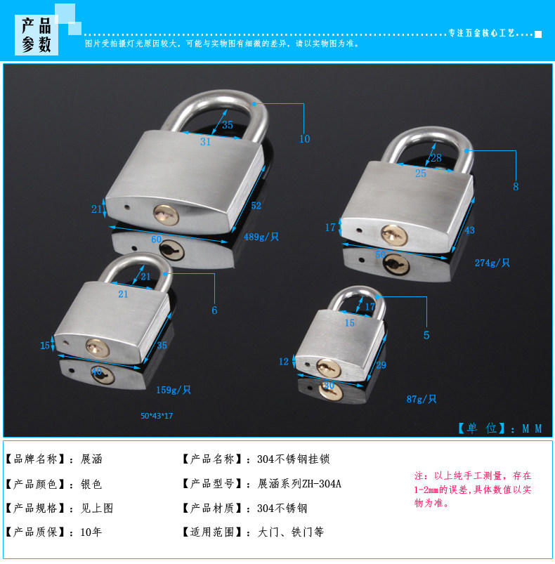 Добрые советы:Из -за проблемы стрельбы света могут быть различия в цвете, и те, кто возражает, осторожны (Этот висящий замок 304 щетки из нержавеющей сталиПолем