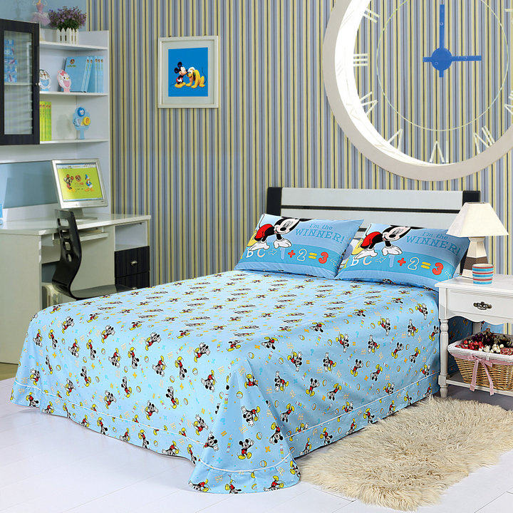 Размер простыни Диснея; 1,8*2,4 метра (для кроватей шириной 1-1,35 метра)