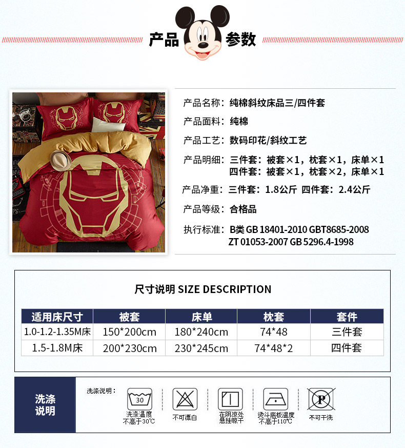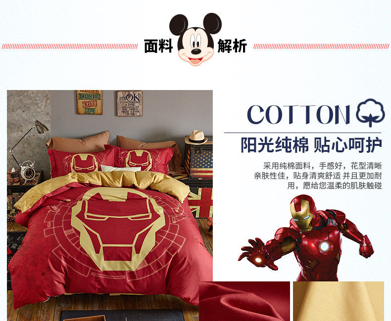 Дисней, Мстители, детский мультяшный хлопковый комплект, 4 предмета, 3 предмета