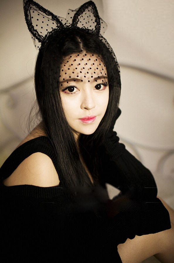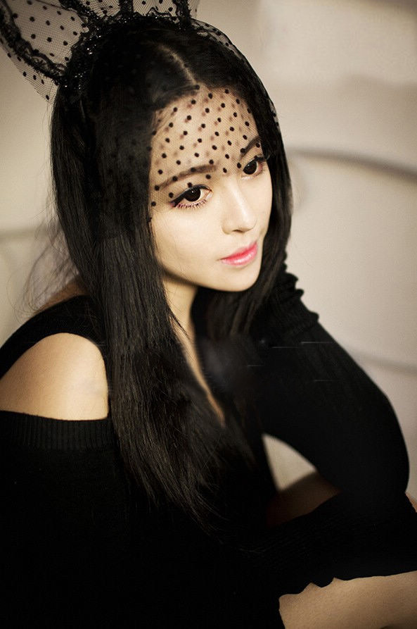 - Черная большая ушная вуаль в горошек