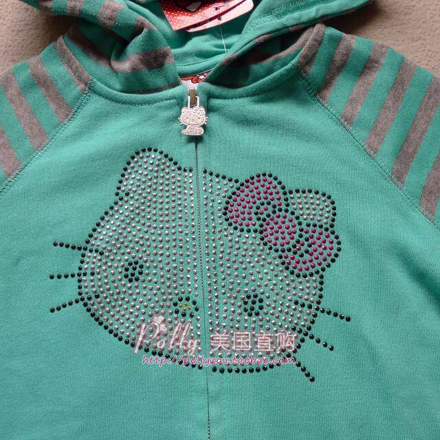 Hello kitty, детская зеленая бархатная толстовка с капюшоном, подходит для подростков, (в наличии на складе)
