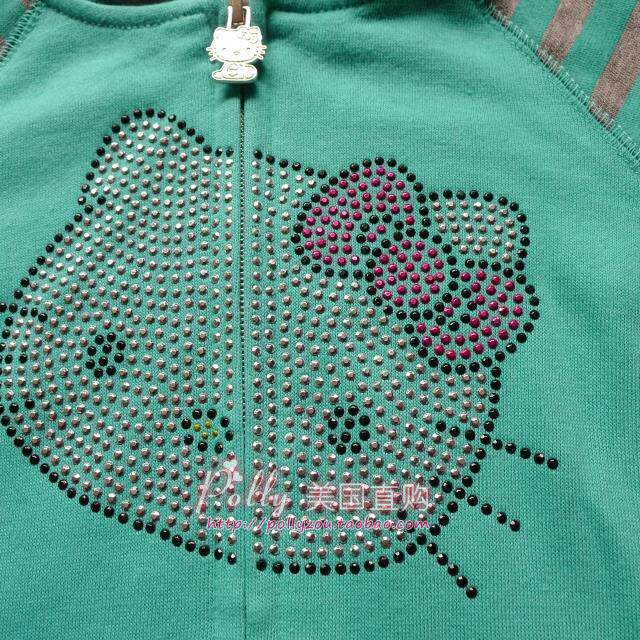 Hello Kitty Big Children's Green Women's Diamond Puster Veleater Velget Lacket