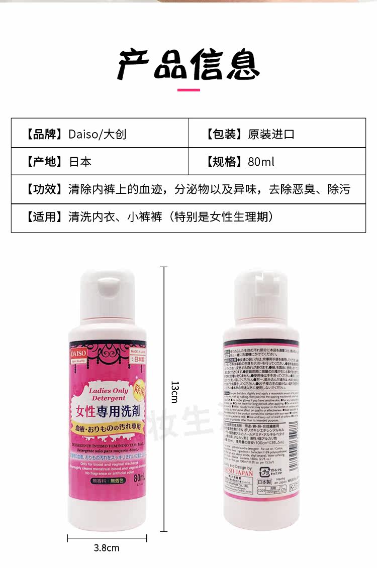 Daiso, японское физиологичное нижнее белье, чистящее средство, жидкость, 80 мл