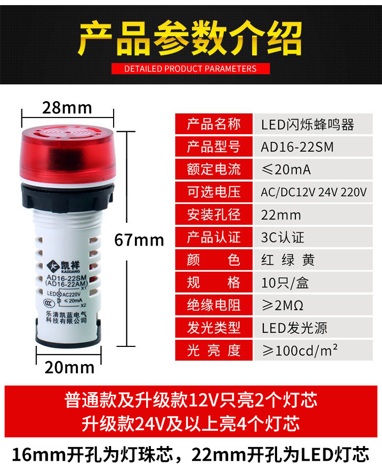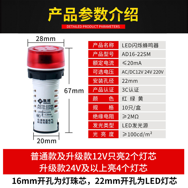 Мигающая сигнализация со светомузыкой, 24v, 220v, 22мм, 12v