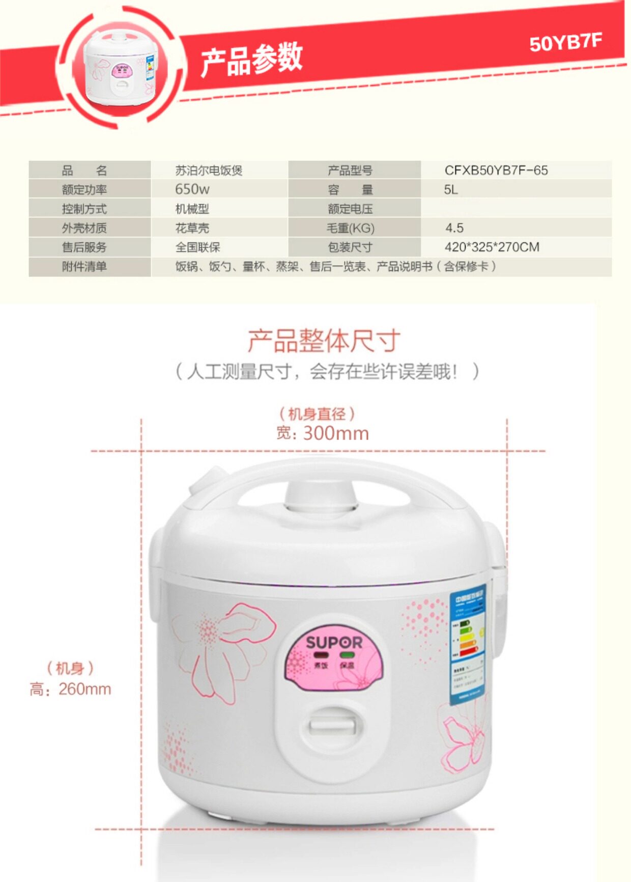 SUPOR/苏泊尔 CFXB50YB7F-65 рисоварка Домохозяйство рисоварки с большой емкостью подлинные 5-6 человек 5-6 человек