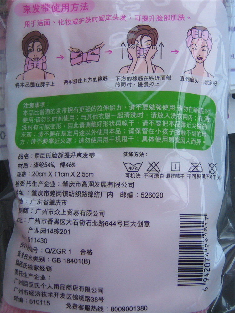 屈臣氏 Подтягивающая повязка на голову для лица, поддерживающая эластичная повязка, база под макияж, платок