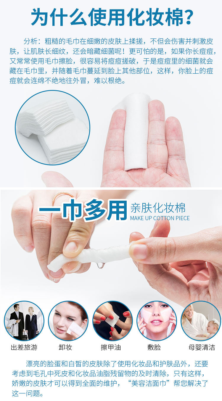 Ватные диски, хлопковые нетканые хлопковые салфетки, увеличенная толщина