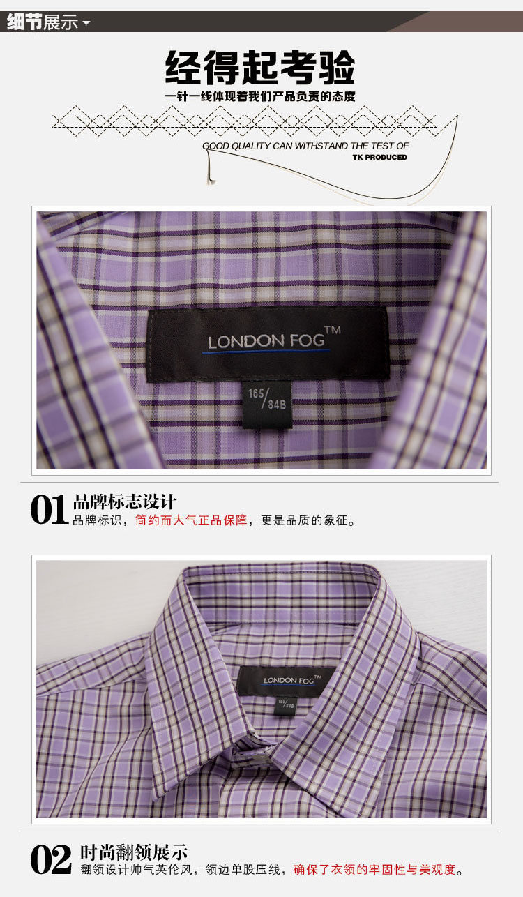 Лондонский туман лондонский туман -стойку подлинное все -коттон -клетчатая мужская рубашка LS11WH007