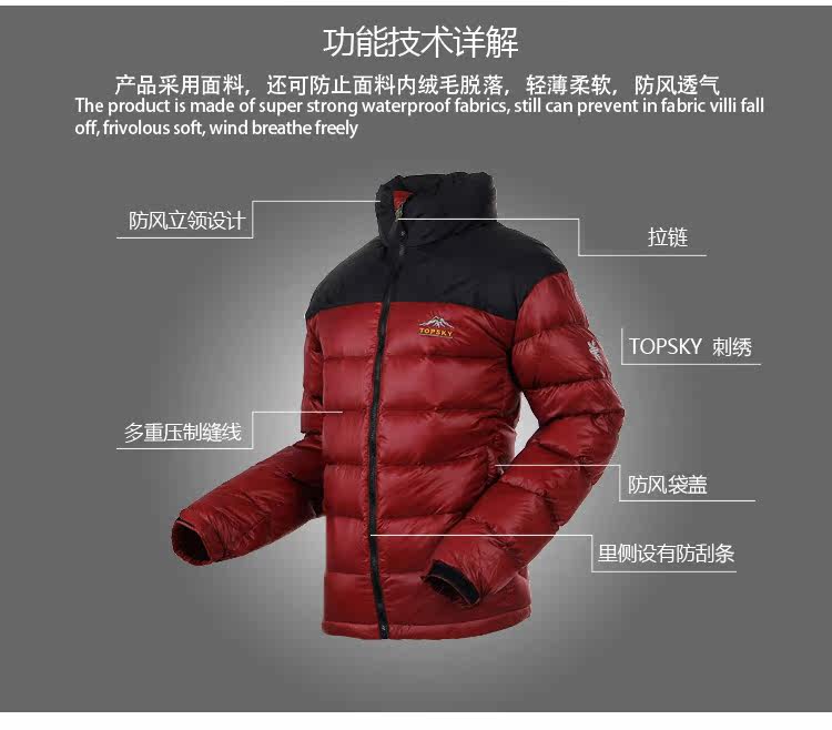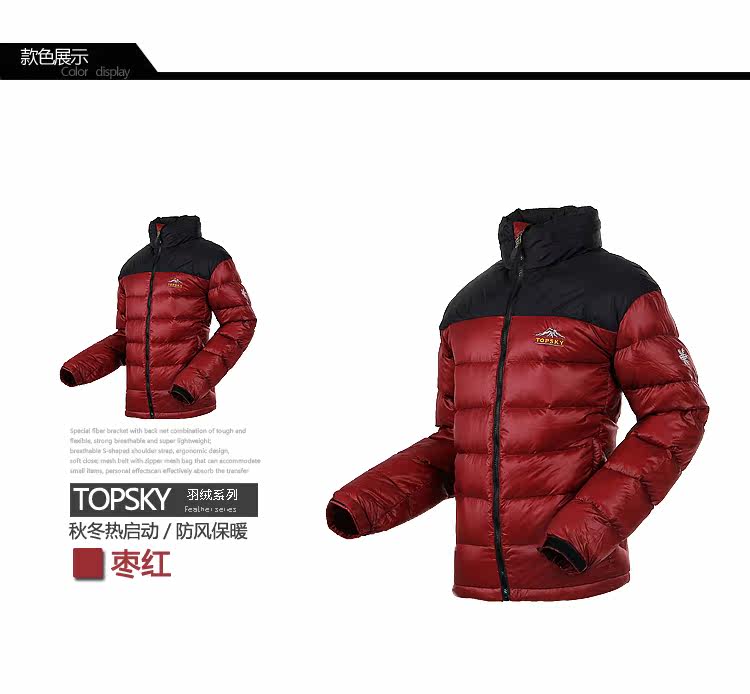 Topsky/远行客 Дорожный зимний тонкий удерживающий тепло пуховик, куртка, облегающий крой