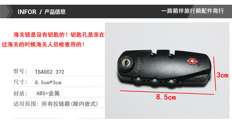US TSA сертификация пароля блокировки пароля TSA002 Таможенная блокировка блокировки блокировки фиксированная блокировка