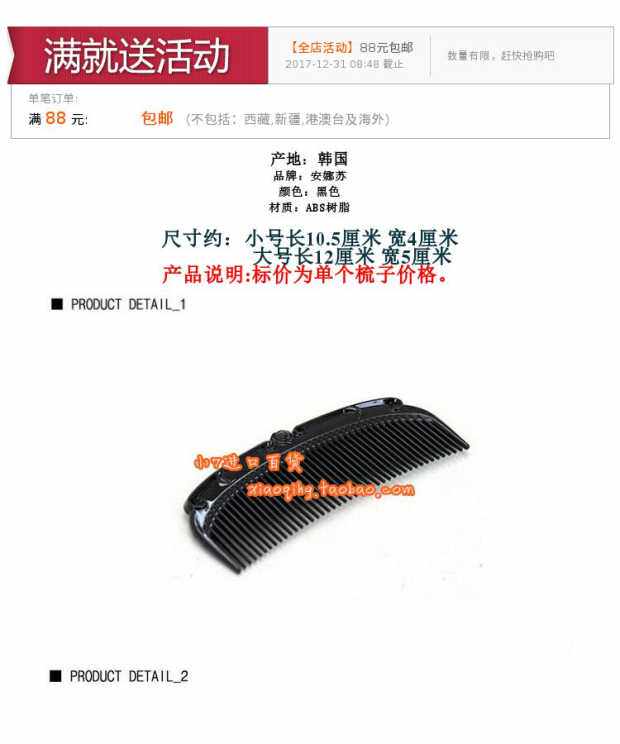 Anna sui, импортная ретро черная большая маленькая расческа, в корейском стиле